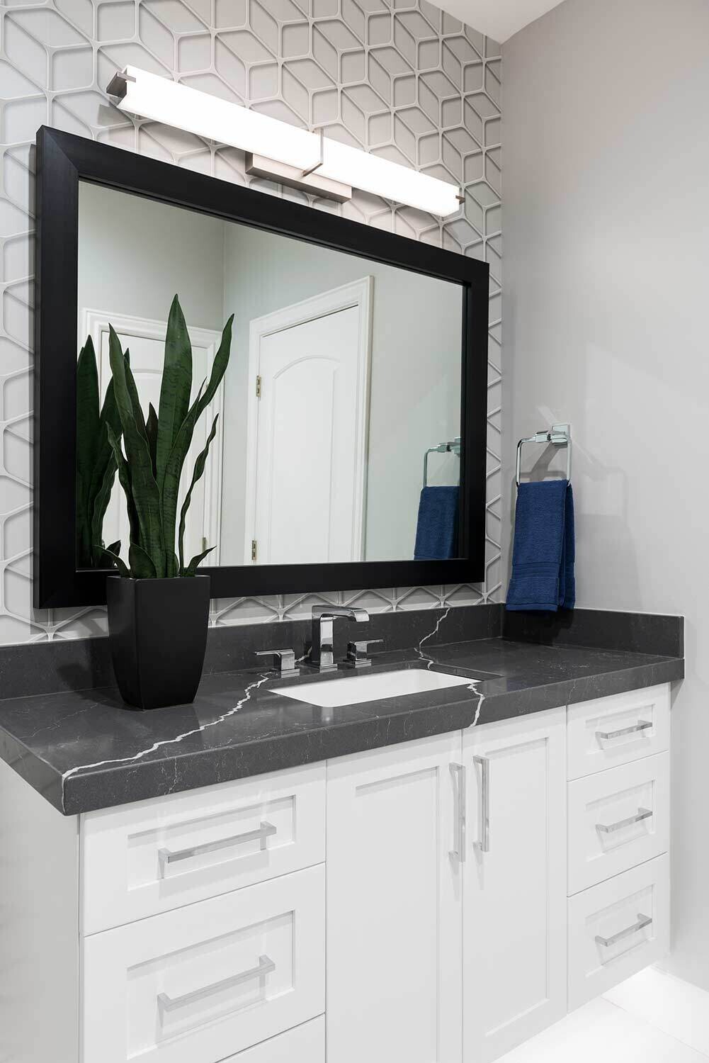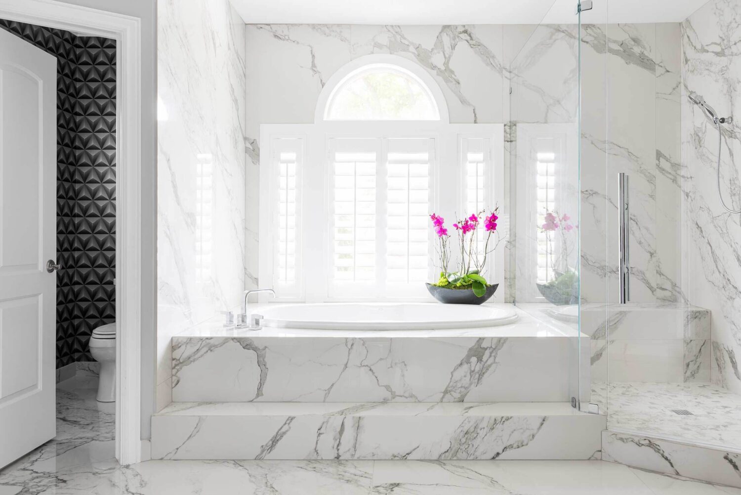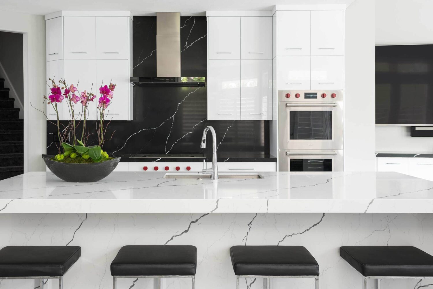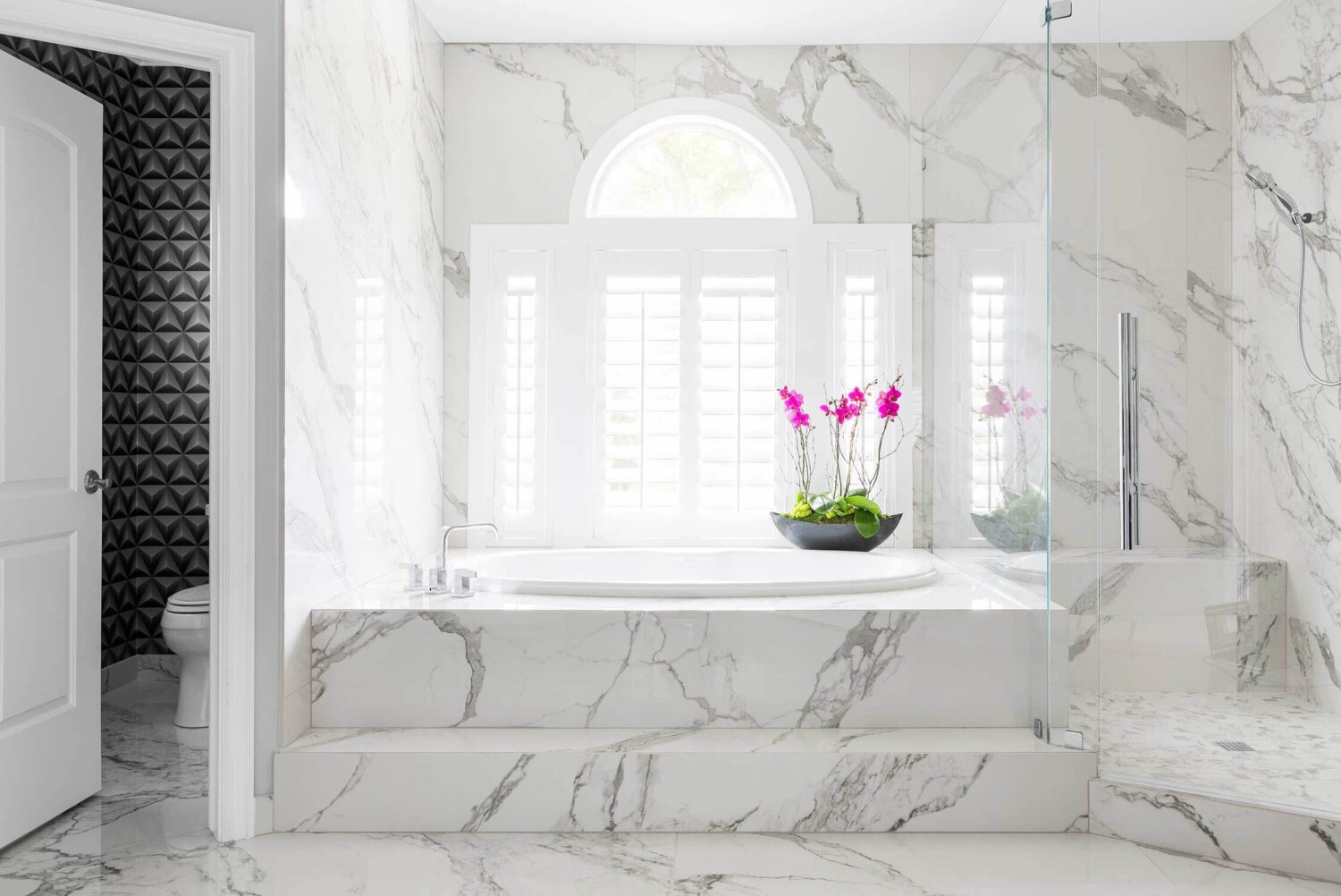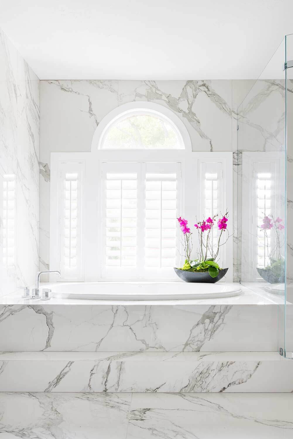 Going from Tuscan styling to Ultra-Modern is no small feat! It requires a creative eye to reimagine the space and a clear vision to bring it all together. That's what our residential team was able to do on this Holladay, Utah stunner. The key to our transformation: opening up the floor plan by taking down several non-weight bearing walls and moving the color palette away from wooden floors and paneled walls to sleek, large-format porcelain tiles and white walls. It can be a tightrope, mixing the clients' wants with the original architecture of the home. Still, the transformation in the kitchen, with the waterfall feature on the island and textured wall detailing, truly highlights how a clear vision and focus can carry the day.
