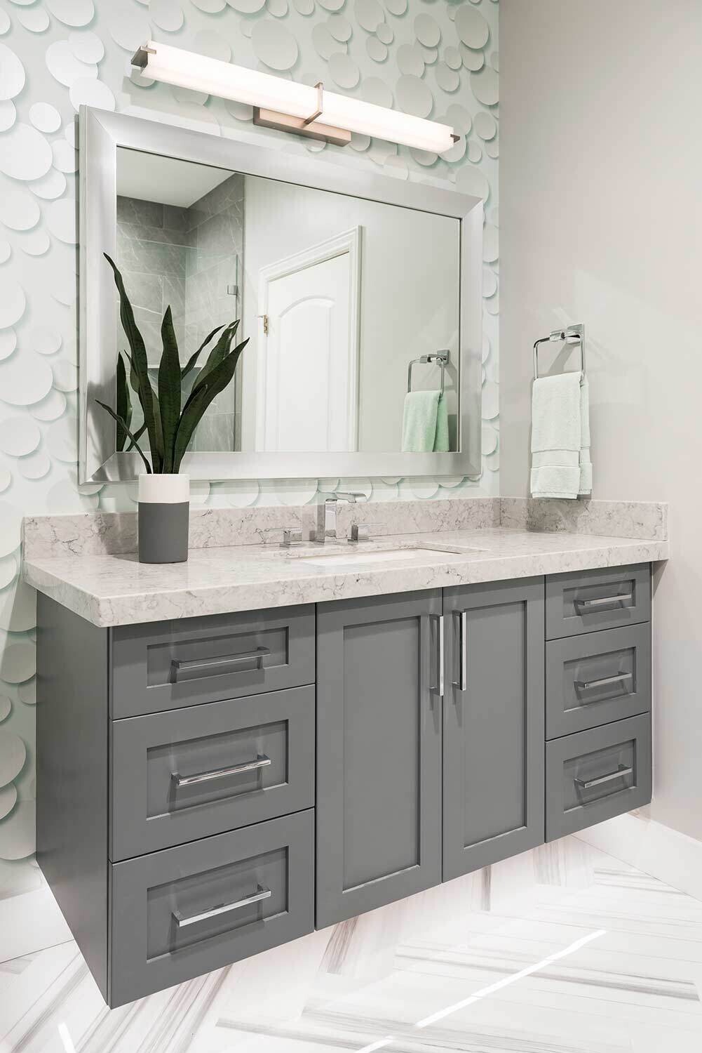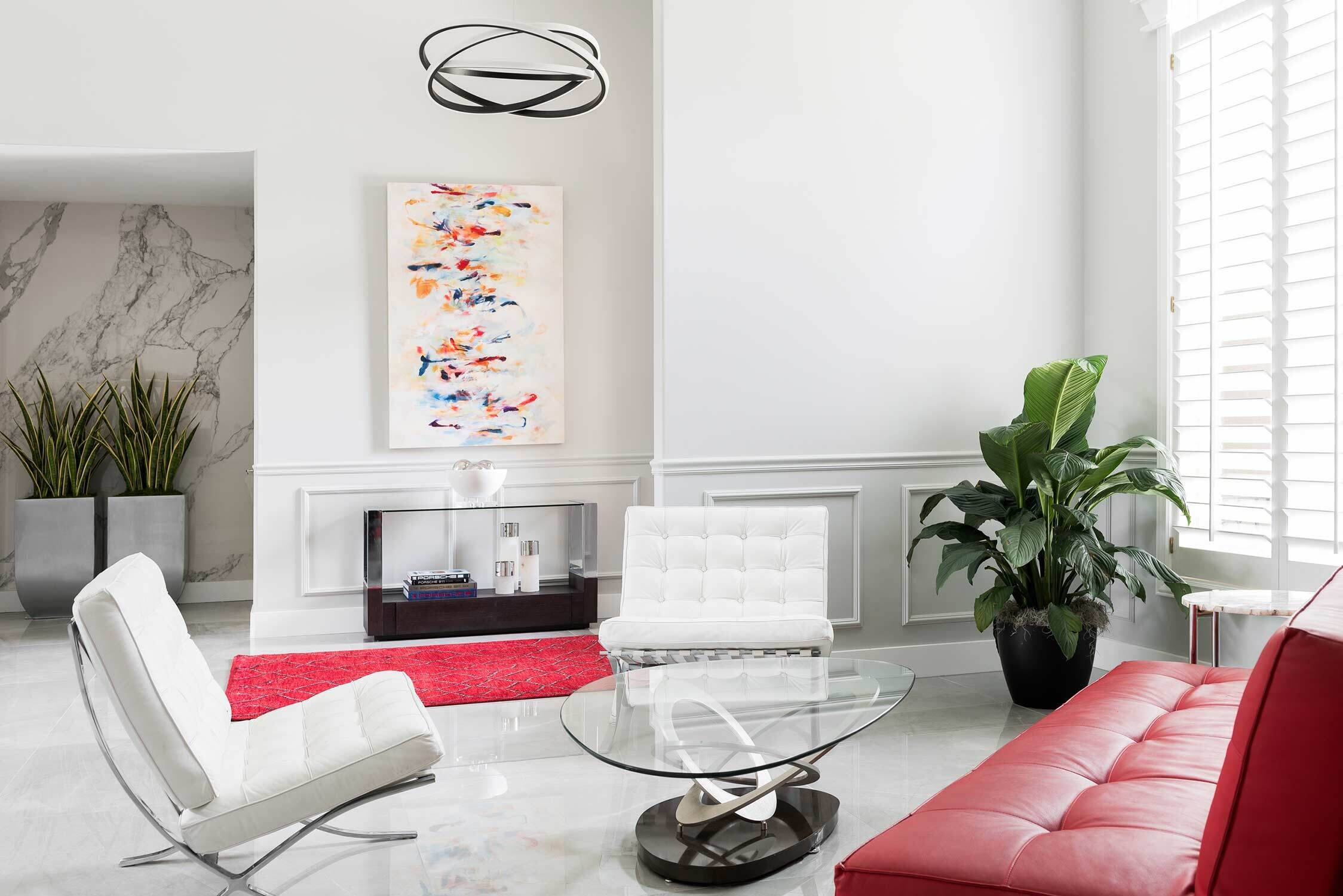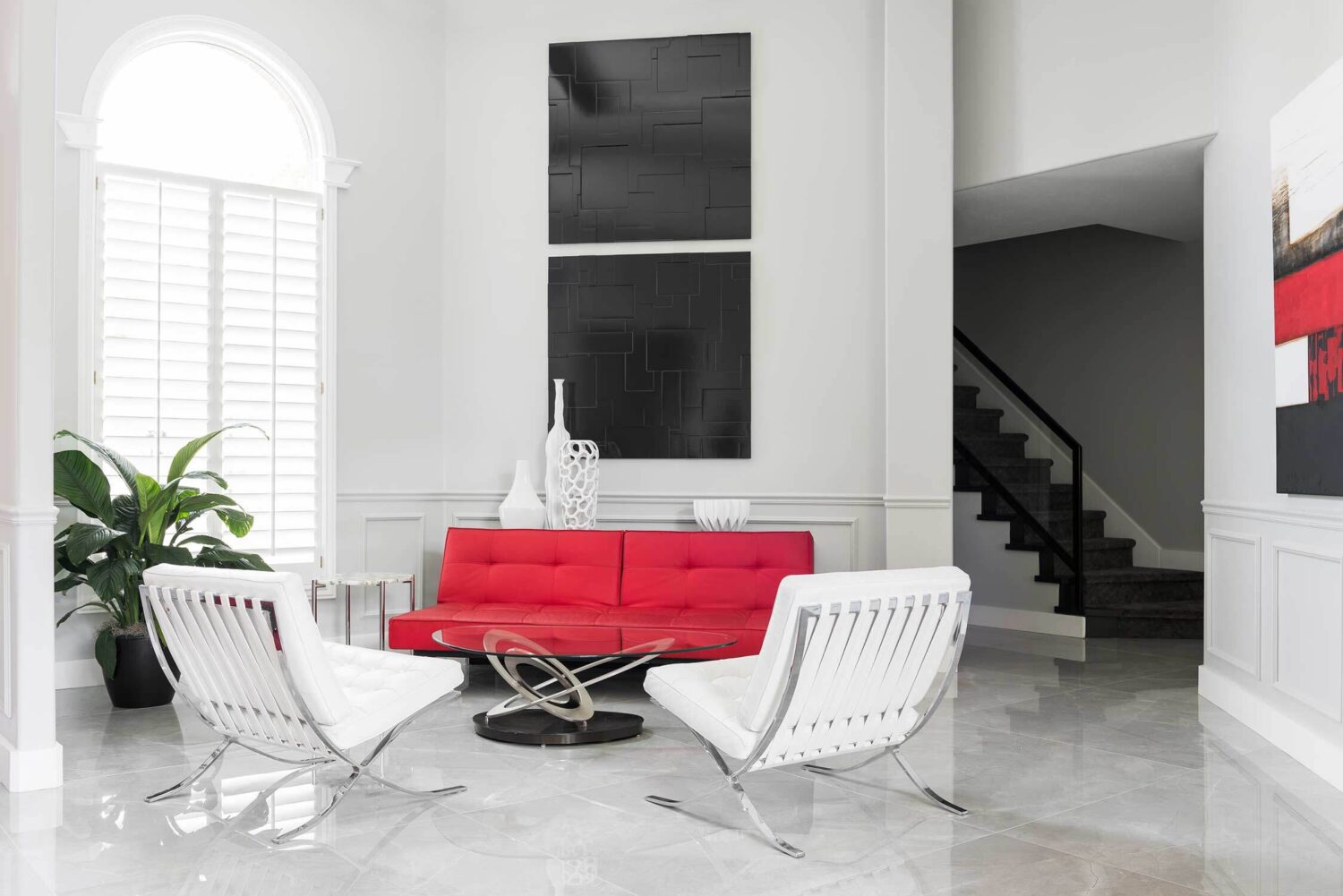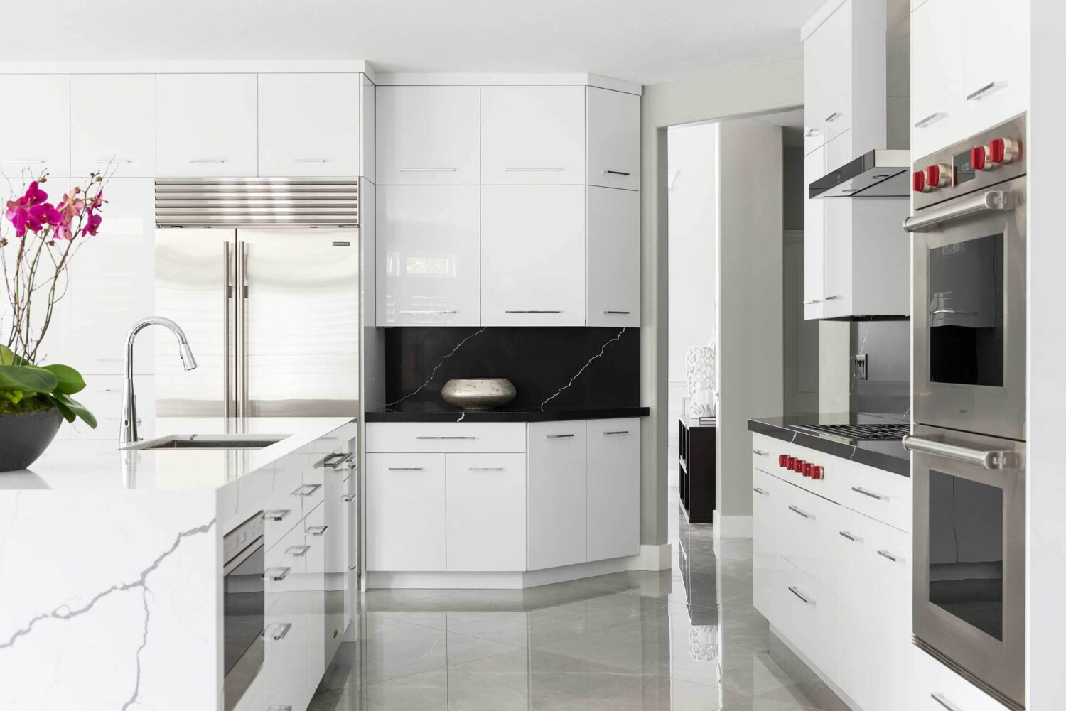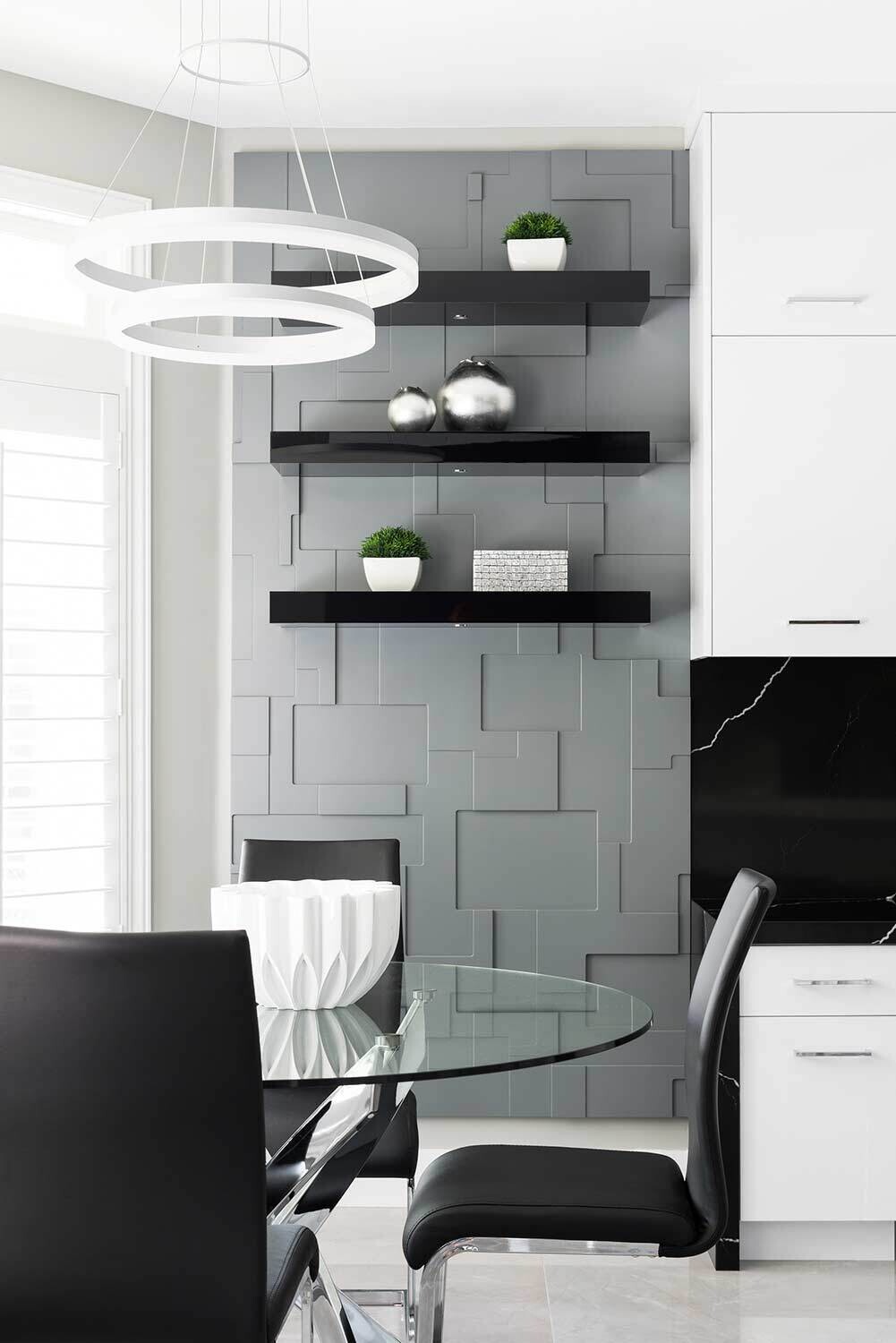 Going from Tuscan styling to Ultra-Modern is no small feat! It requires a creative eye to reimagine the space and a clear vision to bring it all together. That's what our residential team was able to do on this Holladay, Utah stunner. The key to our transformation: opening up the floor plan by taking down several non-weight bearing walls and moving the color palette away from wooden floors and paneled walls to sleek, large-format porcelain tiles and white walls. It can be a tightrope, mixing the clients' wants with the original architecture of the home. Still, the transformation in the kitchen, with the waterfall feature on the island and textured wall detailing, truly highlights how a clear vision and focus can carry the day.