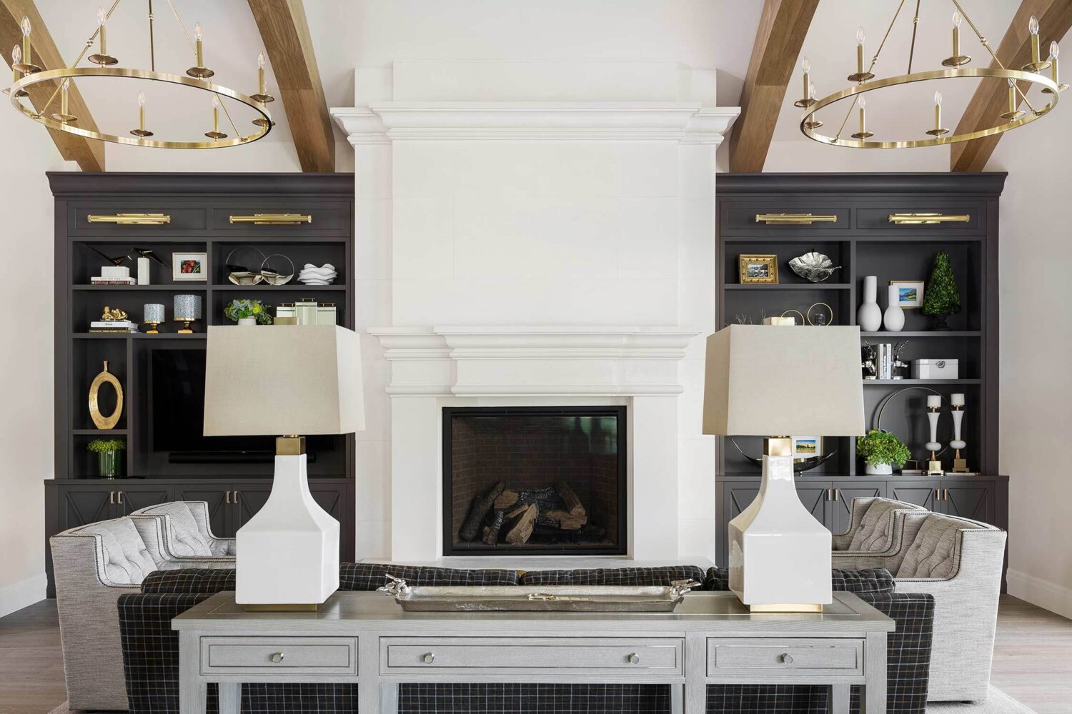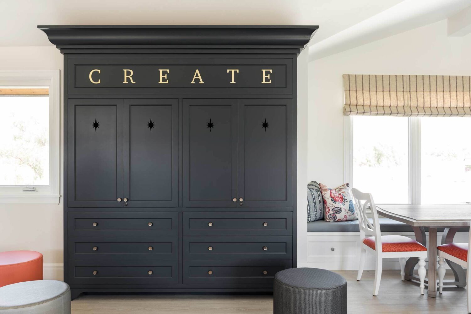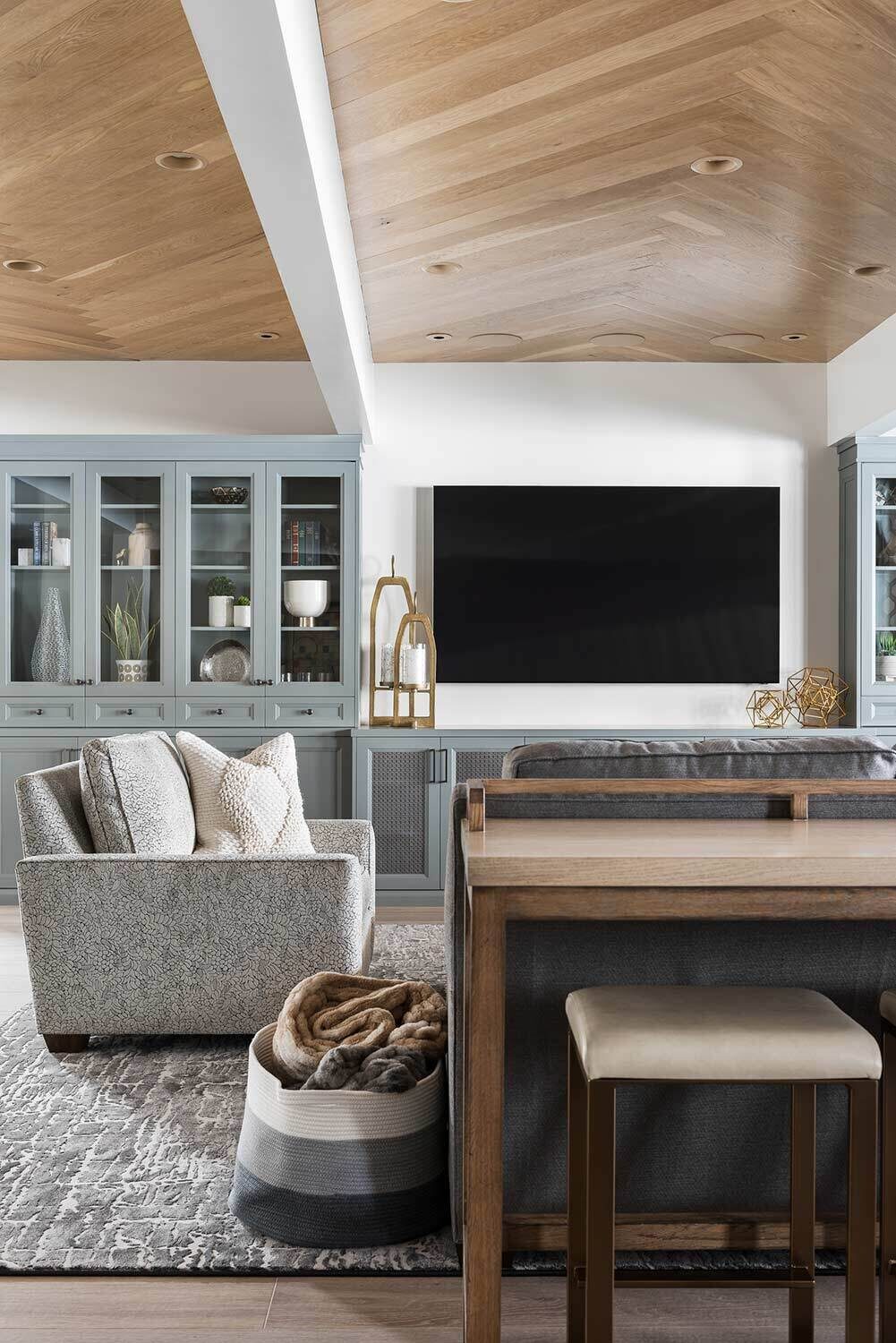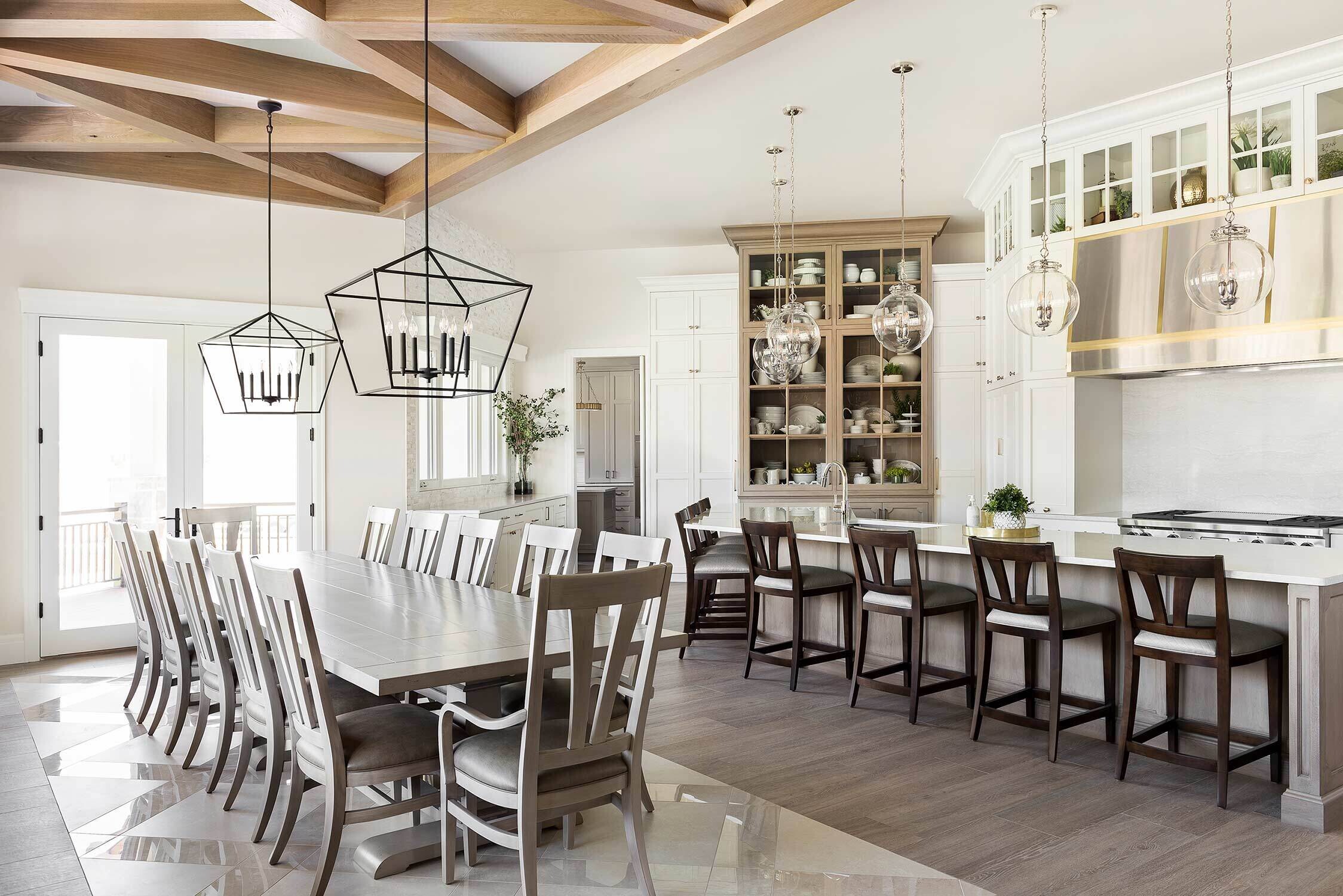 When we're working with a big family, our Open Range team tries to strike a balance between ample seating without feeling crowded...and this transitional Huntsville design nails that to a tee. The elongated kitchen island (paired next to a gorgeous hood and airy cabinet) provides space for everyone (and everything). Our favorite touches? An amazing bunk room, striking lighting in each space, and several built-in entertainment centers.