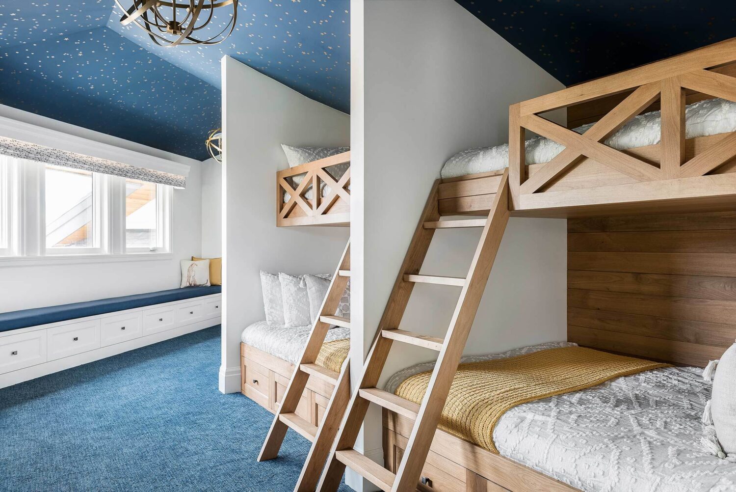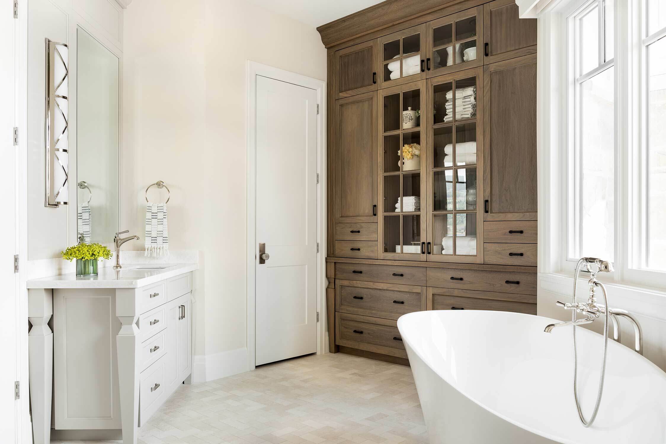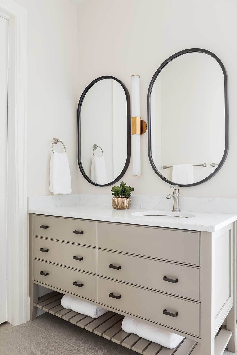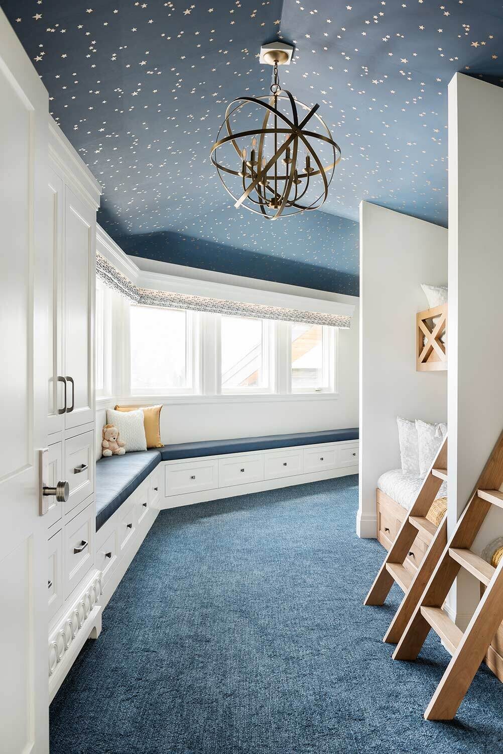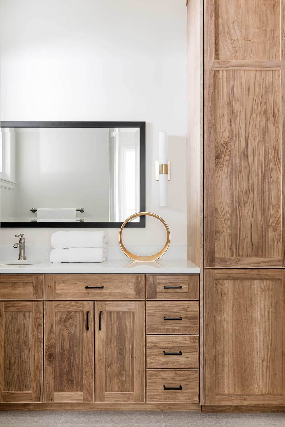 When we're working with a big family, our Open Range team tries to strike a balance between ample seating without feeling crowded...and this transitional Huntsville design nails that to a tee. The elongated kitchen island (paired next to a gorgeous hood and airy cabinet) provides space for everyone (and everything). Our favorite touches? An amazing bunk room, striking lighting in each space, and several built-in entertainment centers.