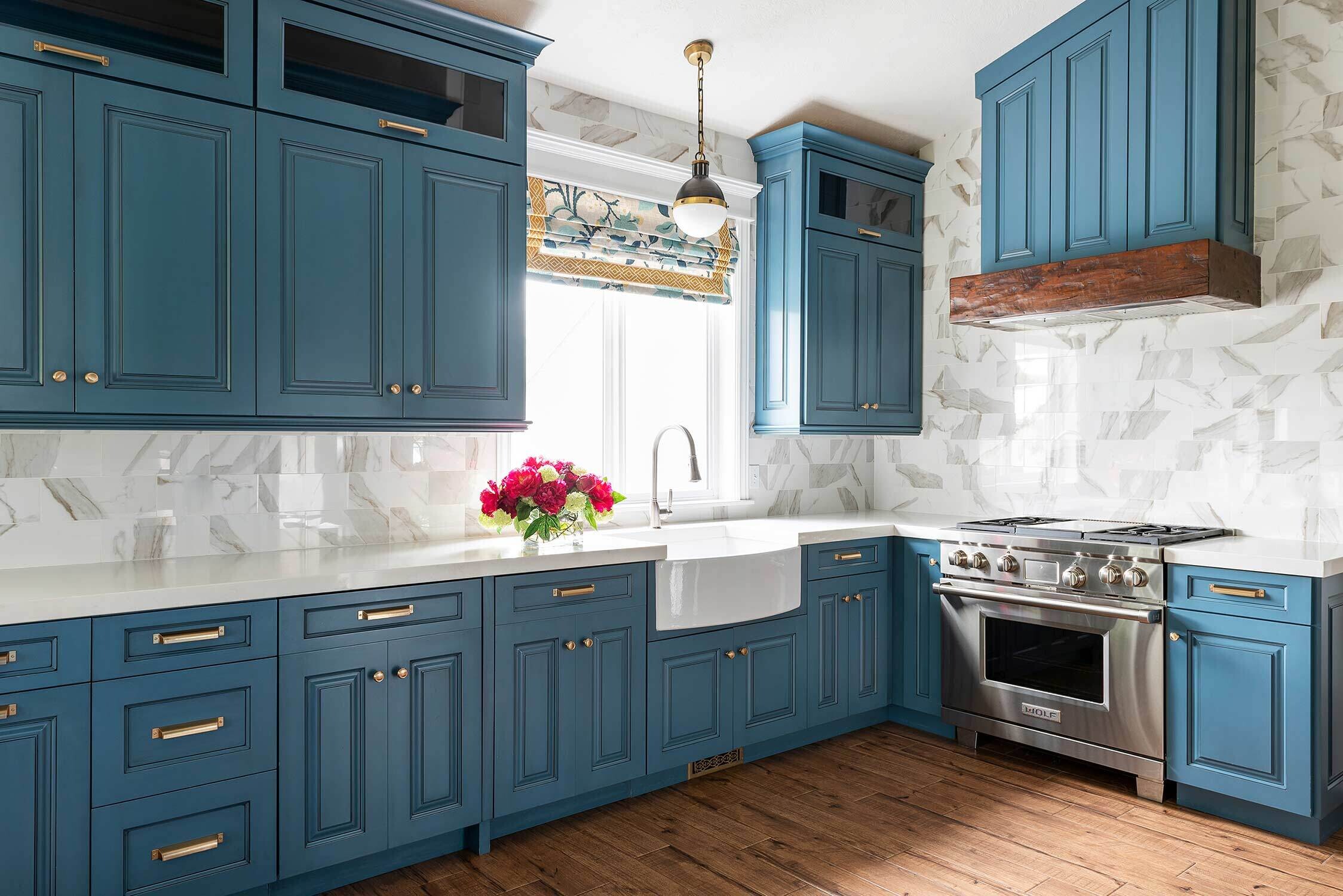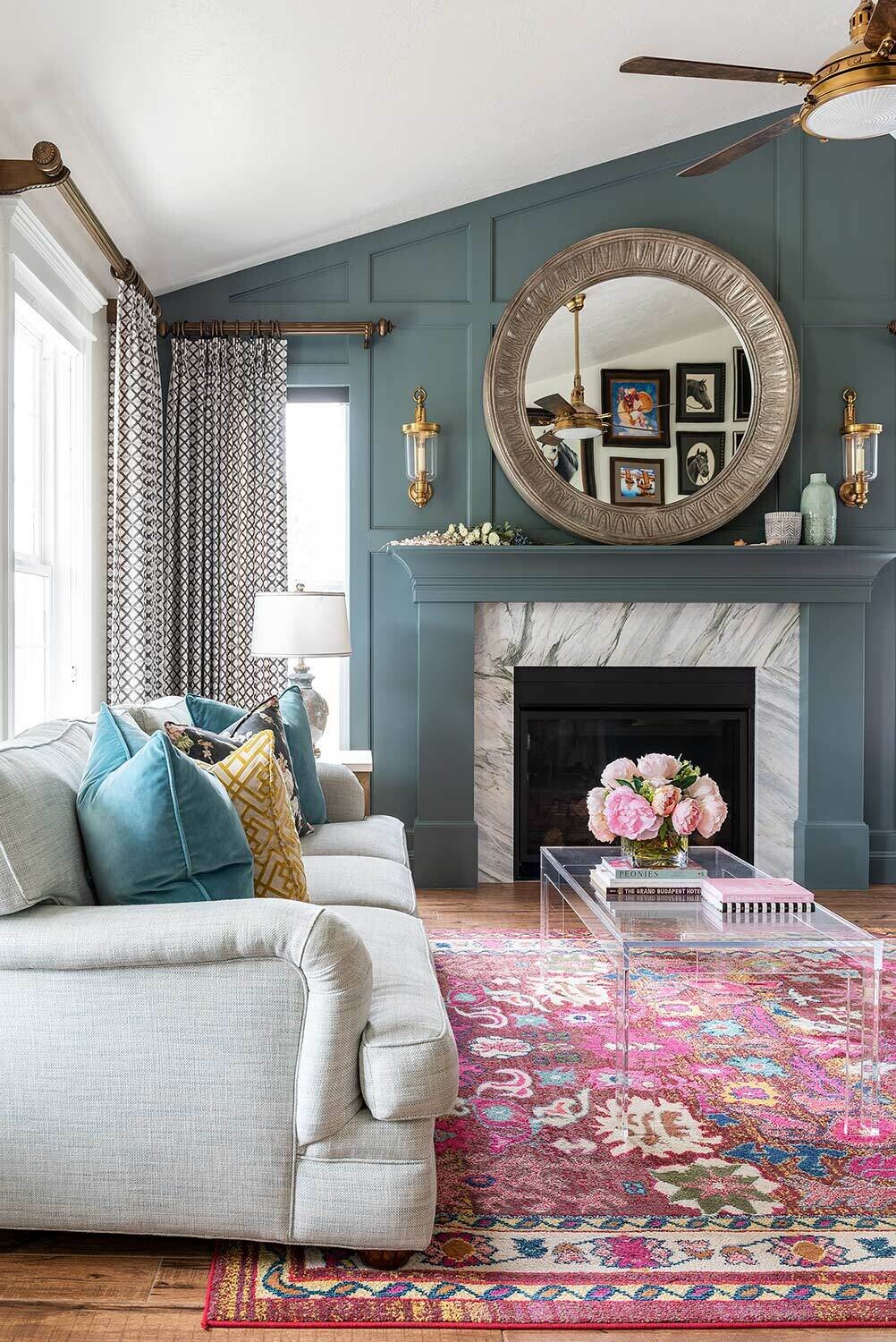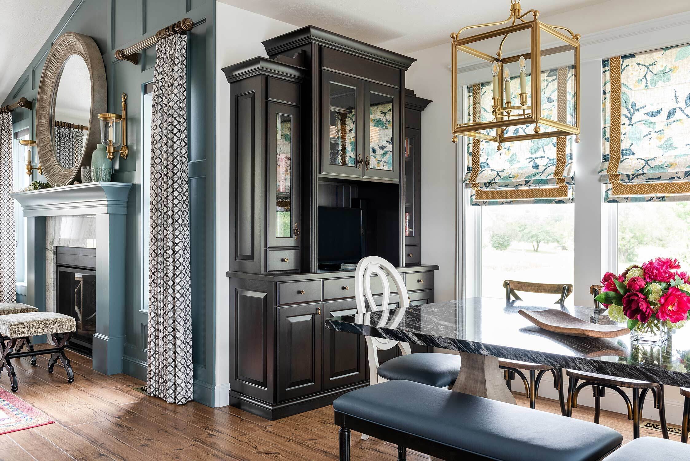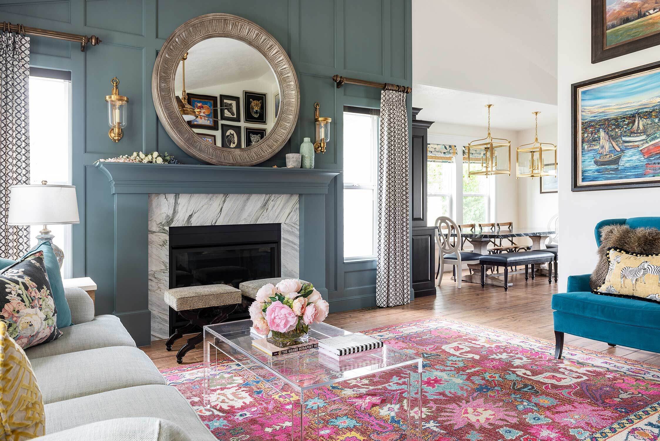 Ornate, extravagant, and the right balance of opulence and functionality - that's what the Glam interior design style is all about. So when this Morgan family asked for our help achieving that look, we pulled out all the stops with bright carpets, striking blue build-in cabinets, graphic window treatments, and a floral wallpaper for the powder room that screams joy, joy, joy!