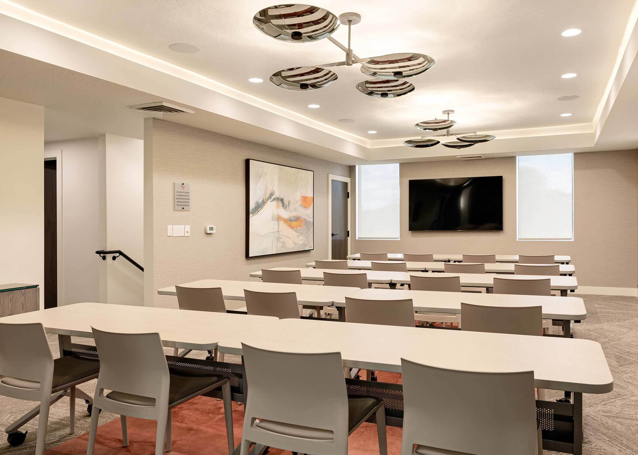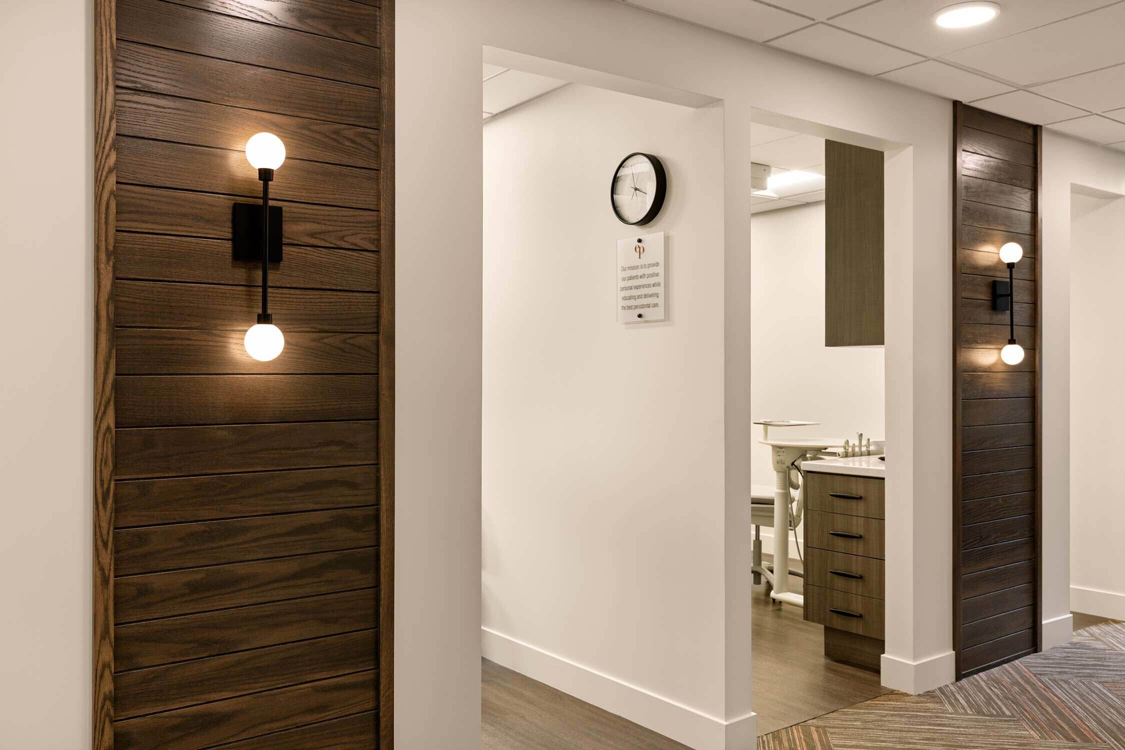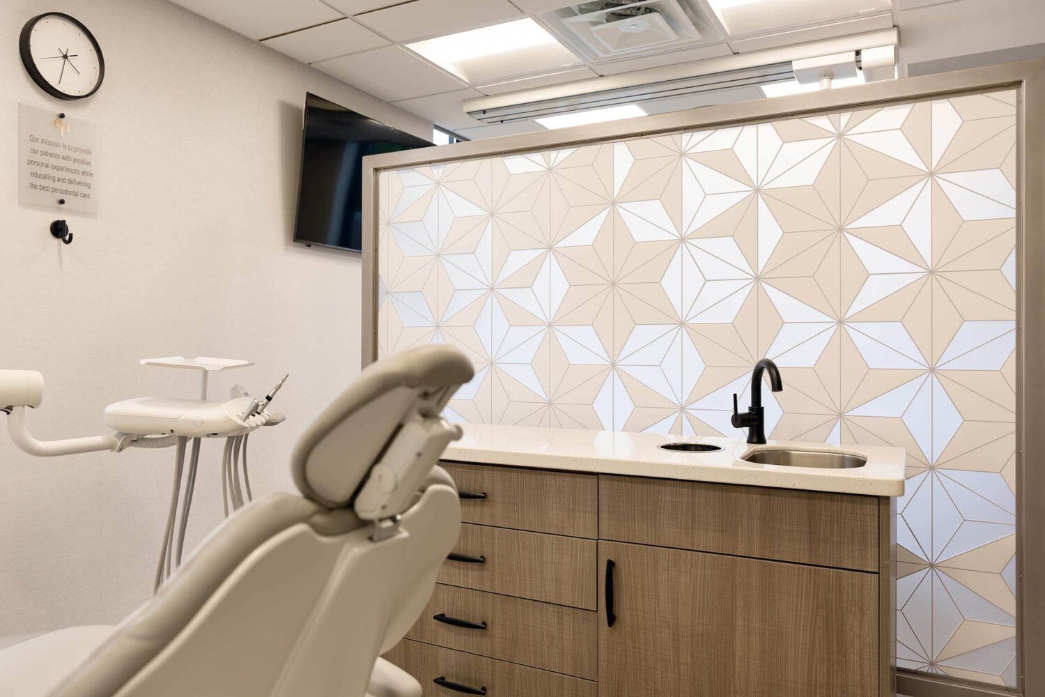 Edmunds Periodontics is known for educating patients in a positive, personalized environment. But in order to effectively set the tone for that type of relationship, it needed its office space to give off a modern yet approachable vibe. By incorporating fun wall textures - through wall paper, partitions and artistic installations - we created a design that puts patients at ease while giving staff all the functionality they need to perform at their best.