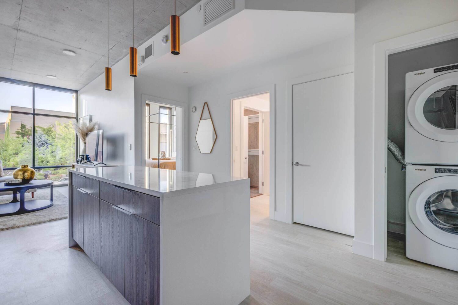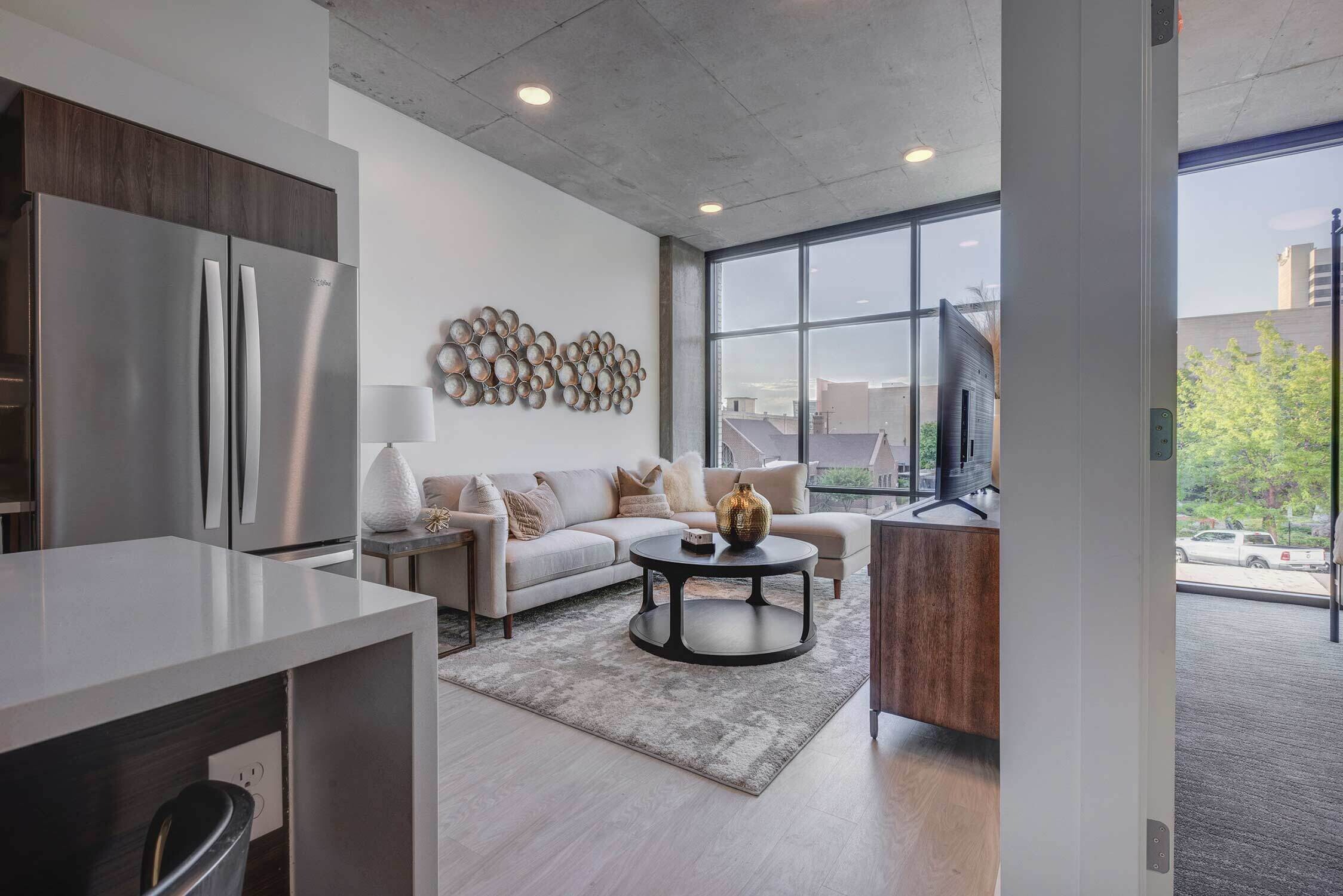The Charles is Salt Lake City's premier, luxury, mixed-family community in the heart of Phase 1 in the West Quarter. To effectively capture that upscale feel, we emphasized natural colors and organic elements, integrating earthy tones and textures to create a harmonious connection with the environment. Our minimalist furniture selection complements the space, creating subtle accents that enable the architectural elements, like each unit's oversized windows, to take center stage.