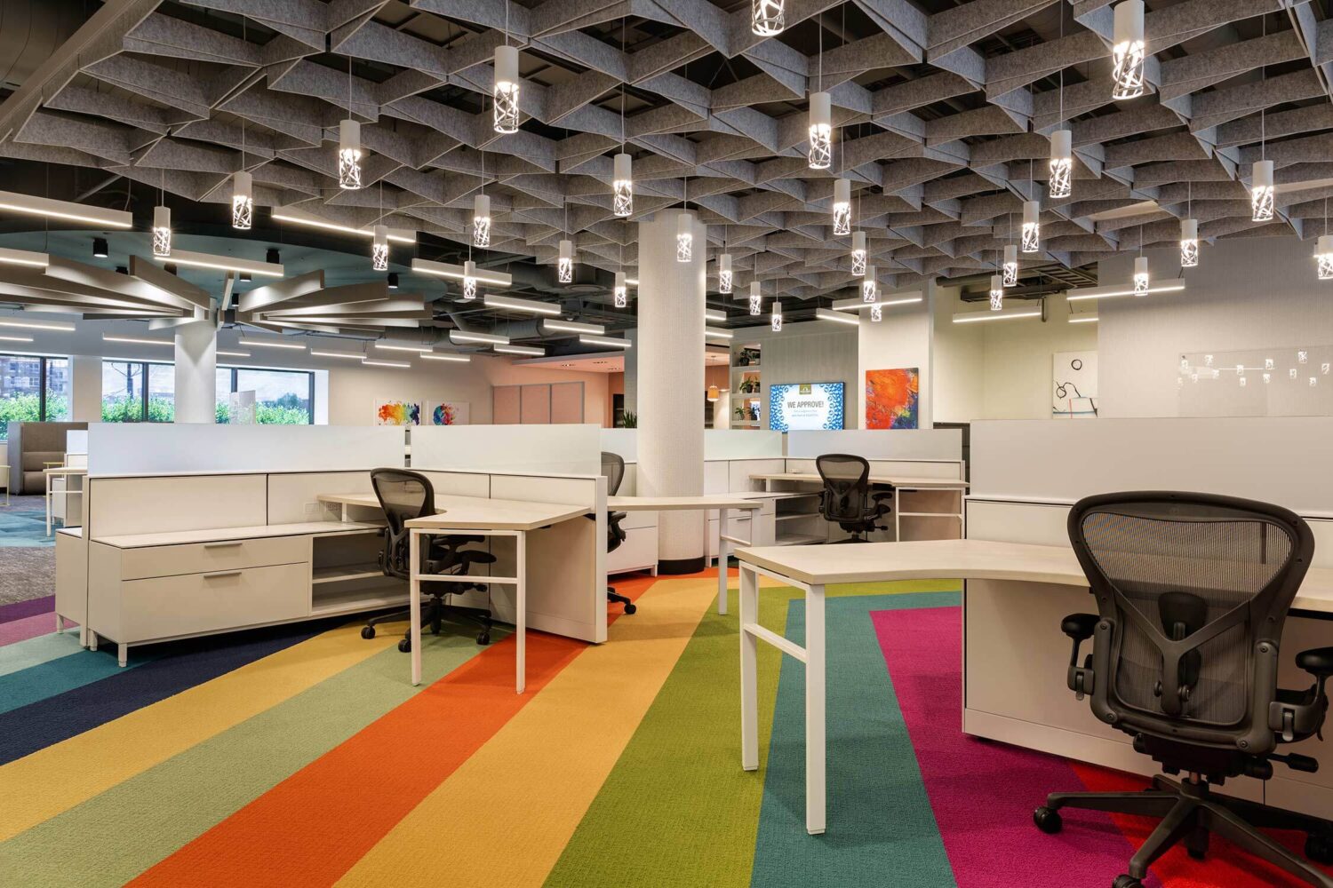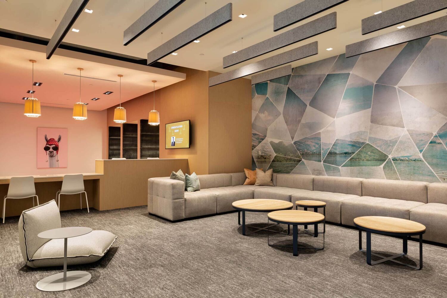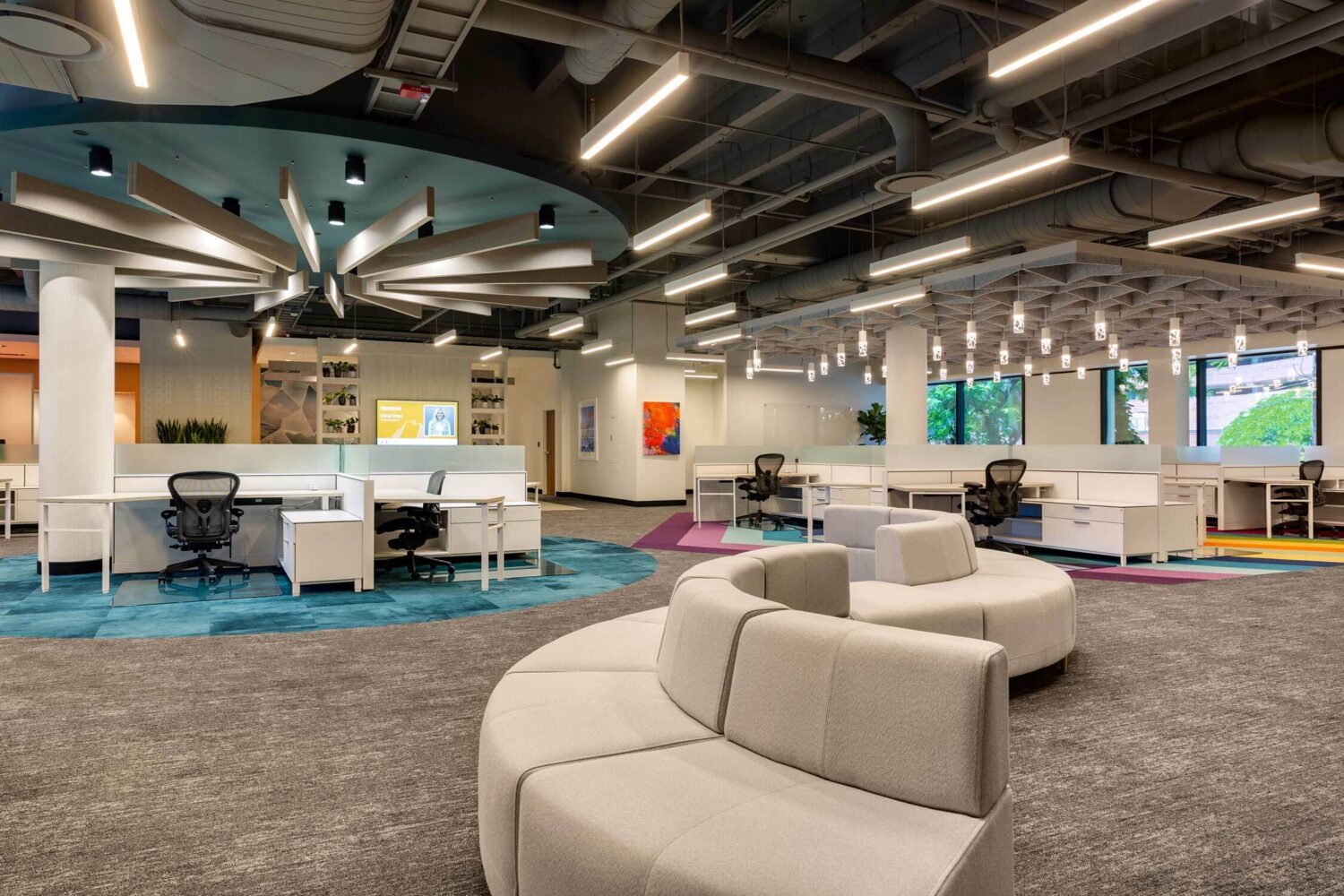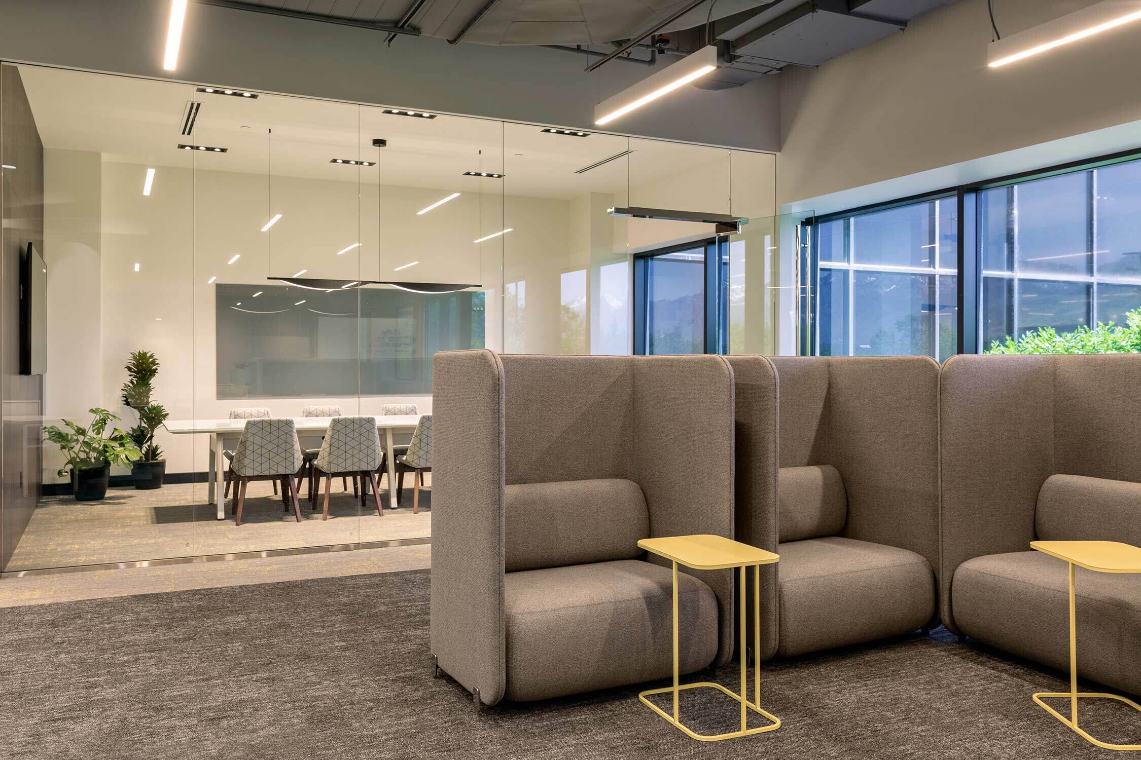 Utah First has a playful, non-judgemental approach that goes back to its 1935 post-depression era founding. So when the Credit Union wanted to update its corporate headquarters, it needed a design partner who could help toe the line between trusting banking organization and color outside of the lines lender. Our design pairs playful lighting, colors and accent seating with true function, emmersing employees in an environment that truly reflects the brand.