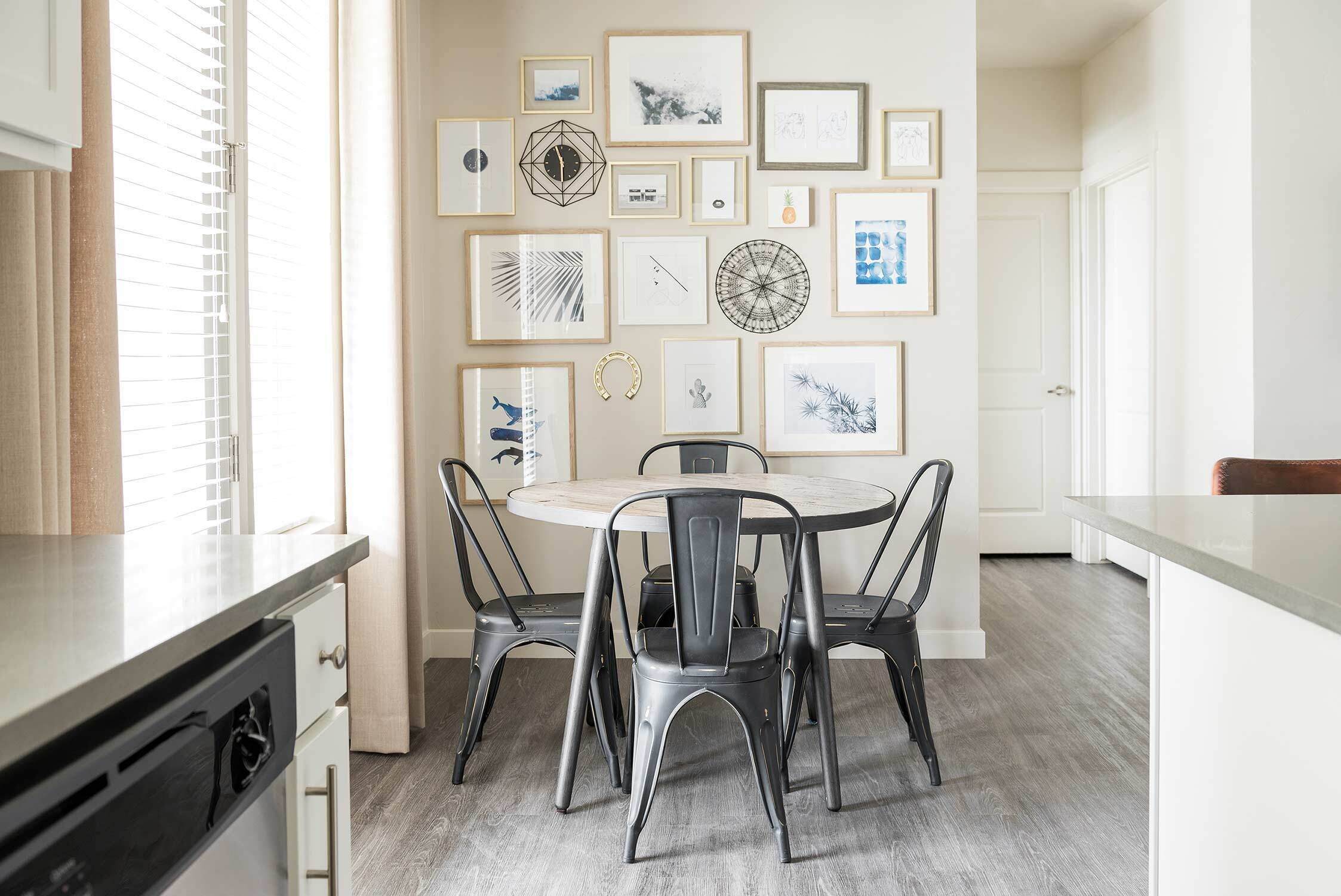 Rivulet Apartments is a resort-inspired community challenging buyers to discover the true meaning of luxury. Boasting tastefully appointed interiors, we wanted to give off a light and airy feeling as soon as prospects enter each unit. Our multi-family design team was able to achieve that with a clean color palate that makes the space shine, modern lines reflected in beautiful office bookcases, and playful art placement. The spaces give off the feeling of being lived in, while also appealing to a broad audience.