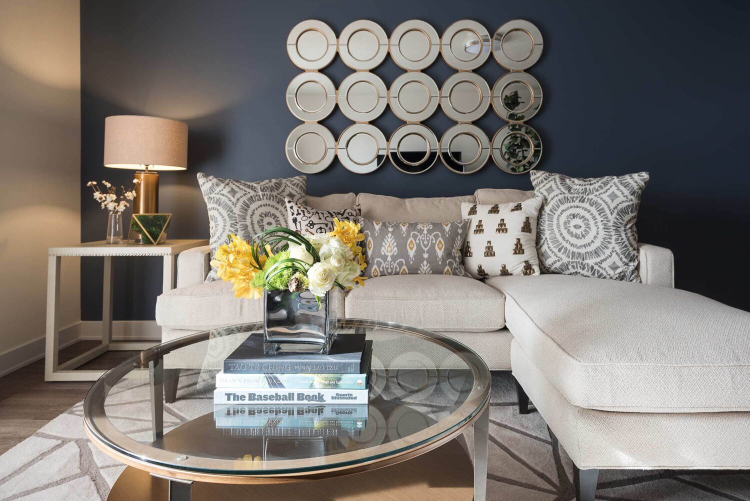 Midtown 360 is a luxury apartment complex that distinguishes itself through high-end amenities and contemporary styling. Our interior designs capitalize on that by taking risks with fun colors and gold accents that catch buyers' attention. Furniture placement is critical in 1-bedroom and studios, and our selections help streamline the space for optimal functionality.