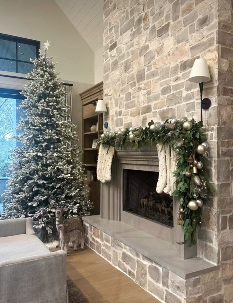 The classic color scheme includes bright reds, greens, and golds. Incorporate natural elements such as fresh garlands, wreaths hung on doors, and vases filled with holly berries and branches. Iconic decorations like nutcracker figurines, Santa figures, Christmas villages, and stockings hung by the fireplace are great additions to your decor.