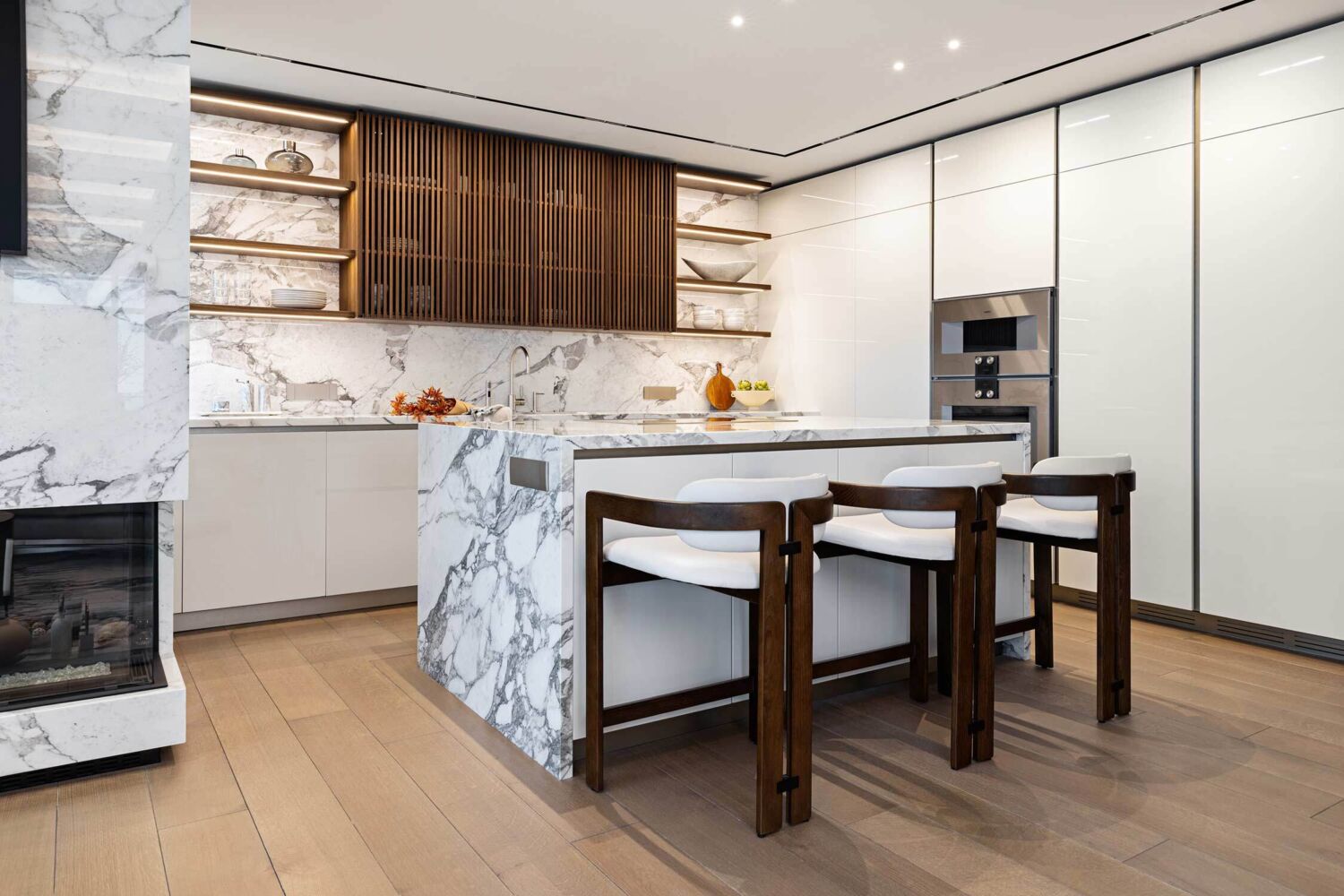 Countertops are the foundation of your kitchen. Materials like quartz, granite, or marble add sophistication and durability. For instance, a waterfall-edge quartz countertop offers eye-catching style and practical durability for everything from baking to daily dinners.