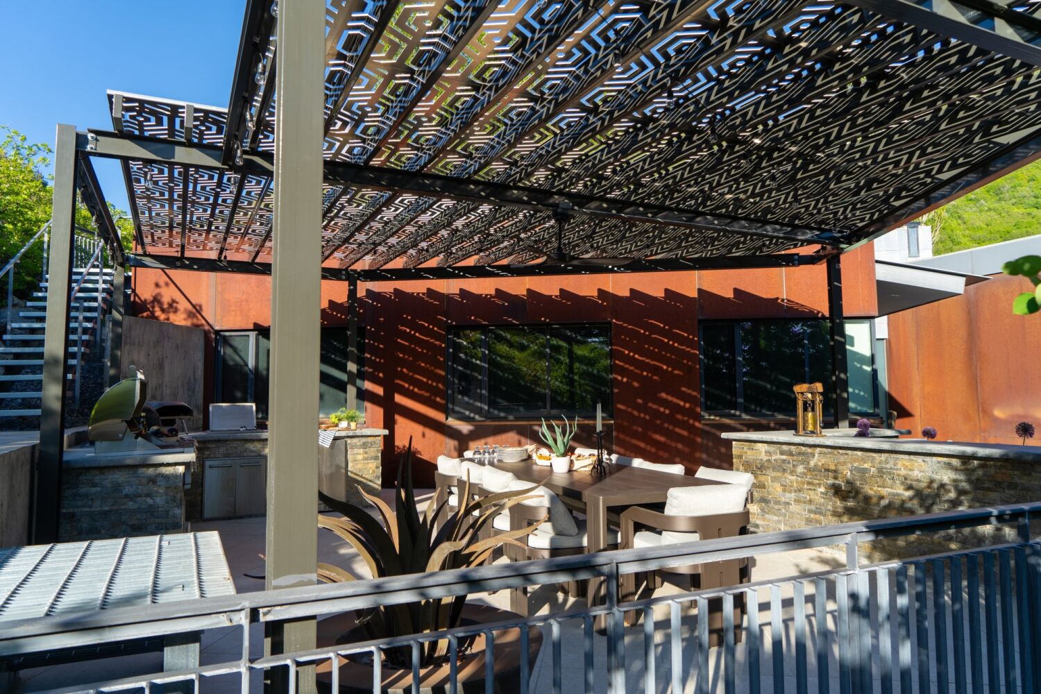 - Low Maintenance: Metal pergolas require minimal upkeep. Unlike wood, they don’t need to be stained or sealed regularly, making them a convenient choice for busy homeowners.